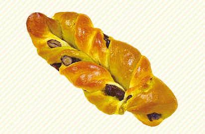 抹茶生地と菓子生地で丹波の黒豆を包み焼き上げた、甘すぎず食べやすいパンです。