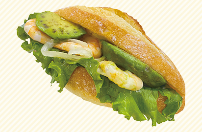 海老とフレッシュなアボカドを挟み、バジルオイルをアクセントにクリームチーズを加えたカスクート。フランス生地なので、噛めば噛むほど口の中に広がっていきます。