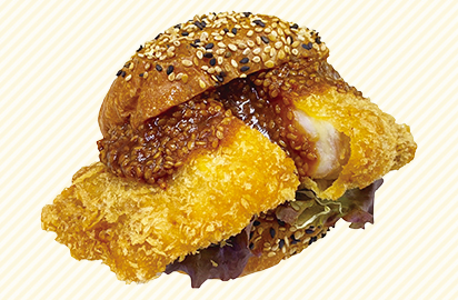 豚バラ肉をチーズで巻き巻きして衣をつけて揚げました。当店手作りの特製胡麻ソースを、たっぷりかけて仕上げました。