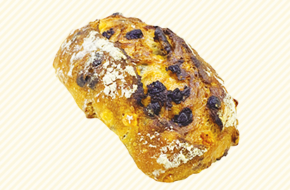 長時間発酵させたフランスパンにオレンジピール、チョコ、くるみの組み合わせ!